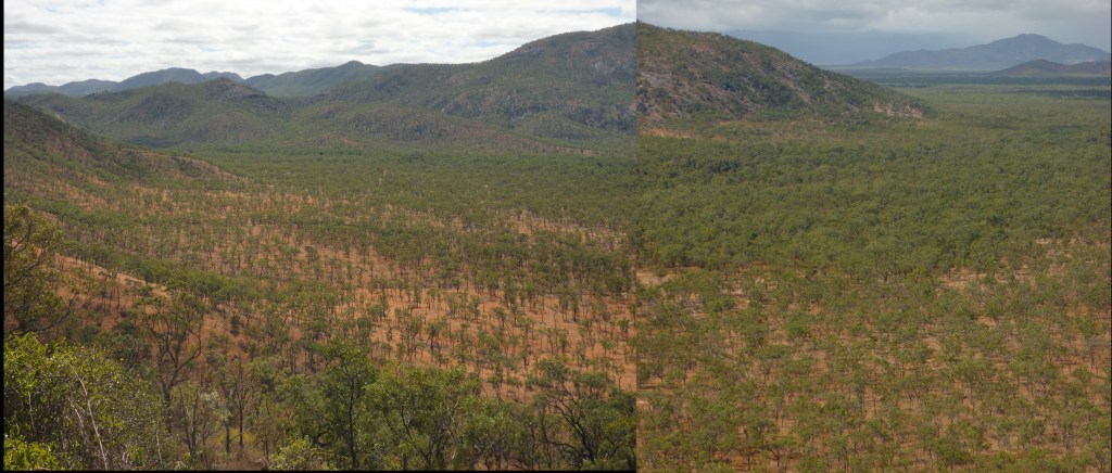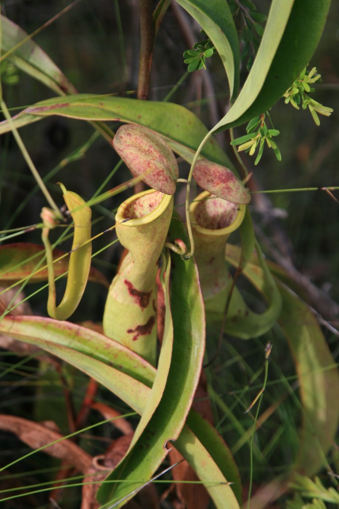 In the vicinity of Mt Tozer (543 m a.s.l.), an area of great significance to local indigenous owners, low heaths and associated nitrogen-seeking carnivorous sundews and pitcher-plants grow on poor soils derived from granite and from welded tuffs. Ant-plants (both Myrmecodia and Hydnophytum) grow on larger trees towards the outskirts of the heathland proper.
