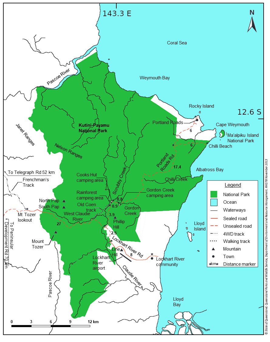 Located in the Lockhart River Aboriginal Shire and Cook Shire on the eastern side of Cape York north of Lockhart River Community (map below), much of the Iron Range and adjoining coasts is in the Kutini-Payamu National Park (https://parks.des.qld.gov.au/parks/kutini-payamu). Kutini-Payamu is a CYPAL park (Cape York Peninsula Aboriginal Land) that is jointly managed by the traditional owners, the Kuuku Ya’u people (including the Kungkay and Kanthanampu peoples) and the State of Queensland, with indigenous freehold as the underlying tenure. For historic and cultural information about the area go to https://lockhart.qld.gov.au/our-history/.