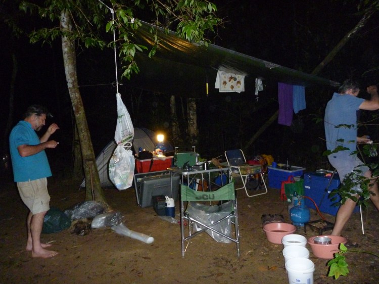 During a scary moment on the Old Coen Track we were baled up by some baying pig dogs on the chase. Their handlers soon turned up to save the feeble academics. A photo below shows that the dogs got their pork!