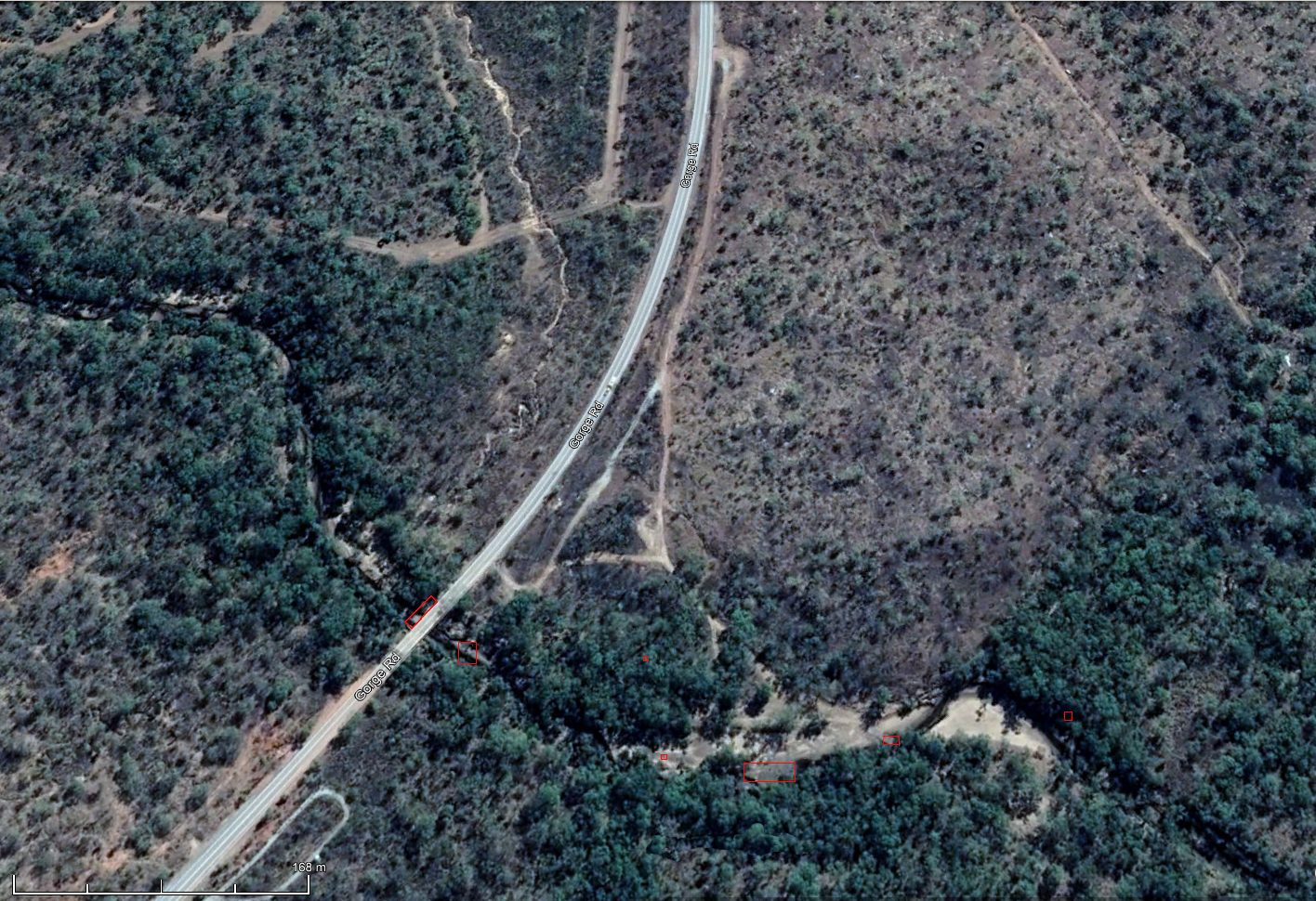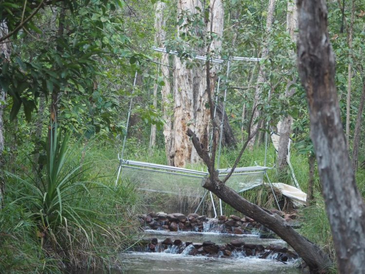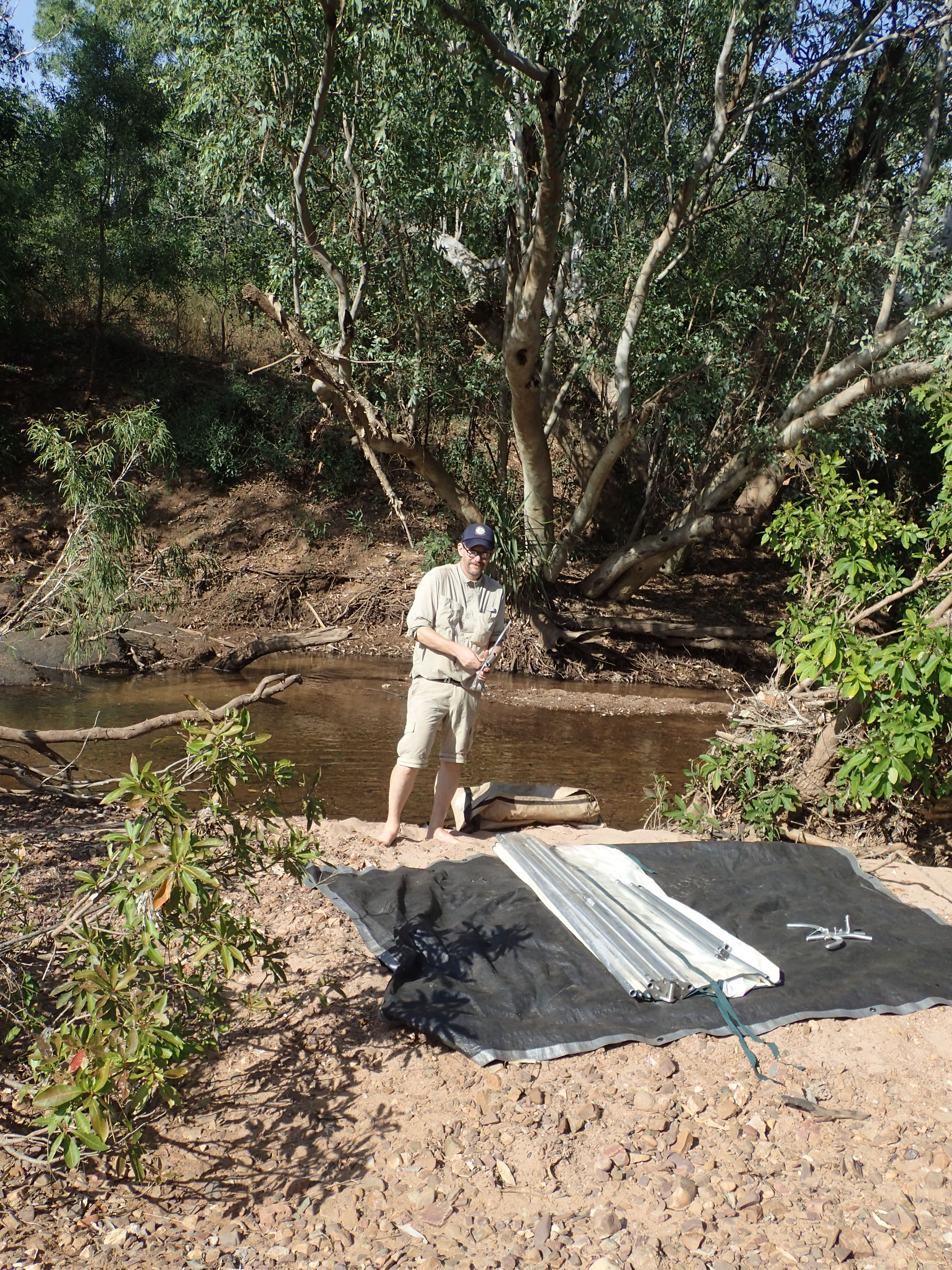 at the Robin Falls Rest Area (-13.35046 o S, 131.13598 o W), a riparian remnant surrounded by land cleared for grazing where, despite high hopes, we did not catch a single bat;