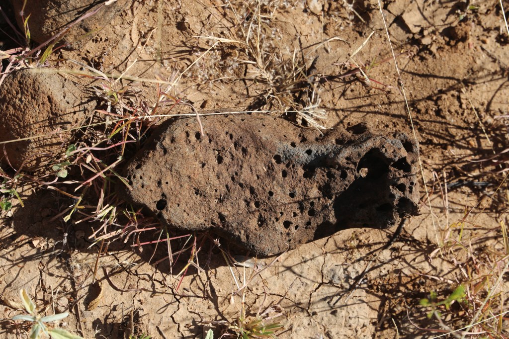 The Gorge walk descends through black basalt boulders and outcrops, and then comes onto a reddish, coarse, pebbly sandstone, which may be Blantyre sandstone that was weathered at the surface before being covered by the basalt (Willmott surmises that it could be a thin layer of the overlying Gilbert River Formation). Lower down, grey sandstone and some beds of conglomerate (consolidated gravel) are of the Blantyre Sandstone.