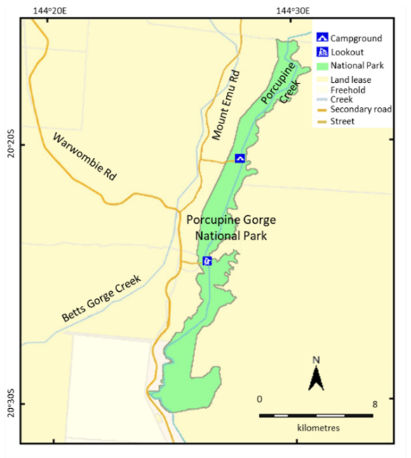 Department of Environment and Science (DES). 2023. Porcupine Gorge Management Plan 2011. State of Queensland, Planning Services Unit. https://parks.des.qld.gov.au/data/assets/pdf_file/0024/168612/mp007-porcupine-gorge-np-mgtplan-gic-approved-2011