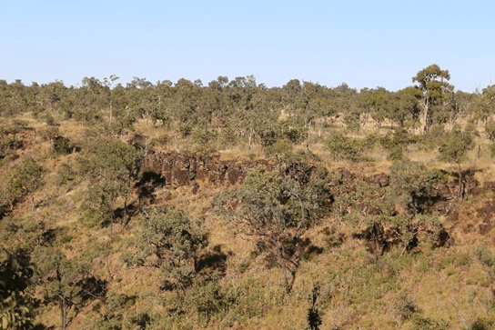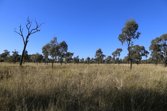 In Flinders Shire, North Queensland, between Hughenden and The Lynd, the Kennedy Development Road rises through plains of Mitchell grass (Astrebla spp), growing with mainly acacias on cracking black soils, into open Acacia and eucalypt woodlands on a plateau topped with basalt.