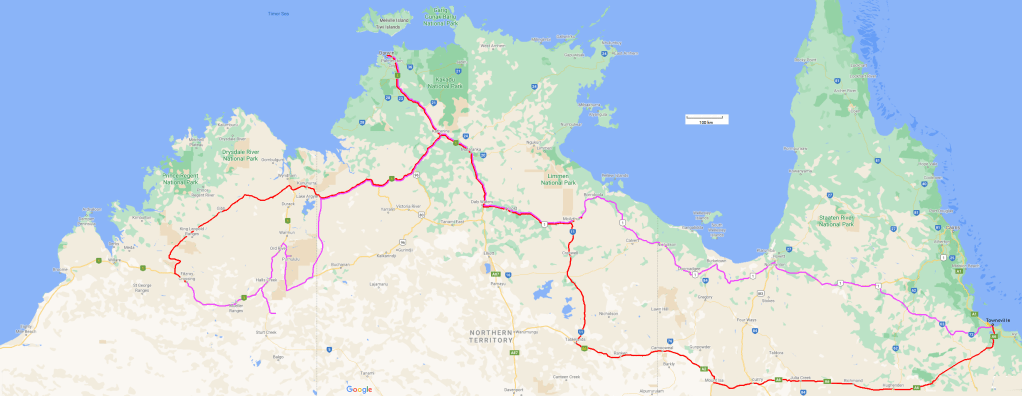 After introductions at the Darwin herbarium, we drove to the Kimberleys, taking the Gibb Road as far as the Devonian reef at Dimalurru (Tunnel Creek National Park), returning via the Great Northern and Victoria Highways, Wolfe Creek meteor crater, the Bungle Bungles (Purnululu NP) and Lake Argyle. Farewelling Yarn at Darwin I returned to Townsville via Boroloola and the Savannah Way, a track that skirts the Gulf of Carpentaria. A fine treck, passing through Hell’s Gate (o/n), Doomadgee, Burketown (o/n), Normanton, Georgetown (o/n) and Einasleigh. All up, the trip was about x,000 km.