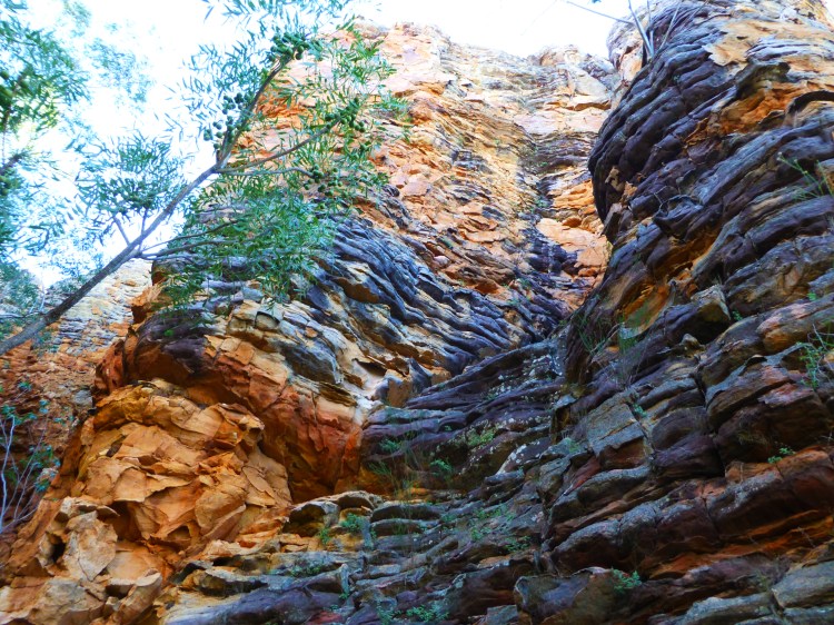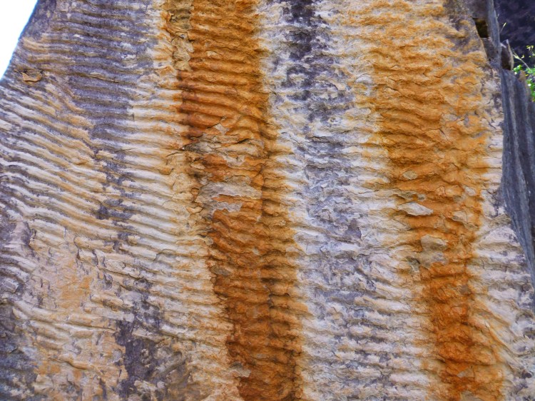 On the third night of the trip I camped at the Heartbreak Hotel, which is at the junction of the Carpentaria and the Barkly Tablelands Highways, NT. About 68 km east is the stunning Caranbirini Conservation Reserve (photos below). The reserve sports banded outcrops of Roper Group sandstone, the remnants of ancient Pre-Cambrian sea-bed and beaches. The bands are alternating deposits of medium-grained and finer-grained sandstone (https://depws.nt.gov.au/__data/assets/pdf_file/0004/272056/caranbirini-conservation-reserve.pdf). The formations are the product of sculpting by water flow coupled with reduced erosion of harder mudstone/shale/limestone/sandstone caps (http://exploringtheearth.com/wp-content/uploads/2017/03/NTGeolMap06.pdf).