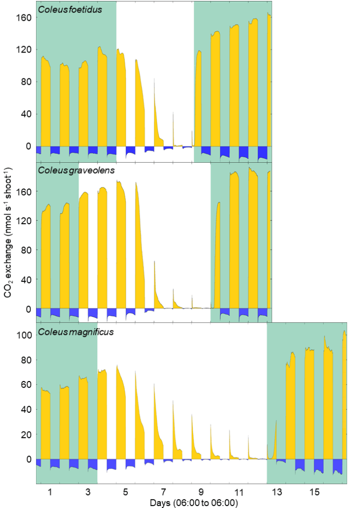 Project: The 20+ species of Coleus (Fam. Lamiaceae) in Australia are descended from probably a single African ancestor that crossed the Indian Ocean. The aim is to survey Australian Coleus for CAM photosynthesis and to compare any expression of CAM with that by African species I can get my hands on. This project will take a while.