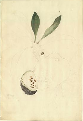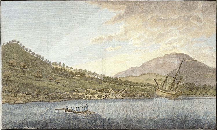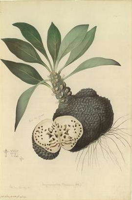 During the stay, the expedition’s naturalists, Joseph Banks, Daniel Solander and Herman Spöring Jr., collected over 200 species of plants. Among them was an ant-plant, a bizarre-looking epiphyte with a bulbous stem-base. Sydney Parkinson, artist to the expedition, made a sketch.