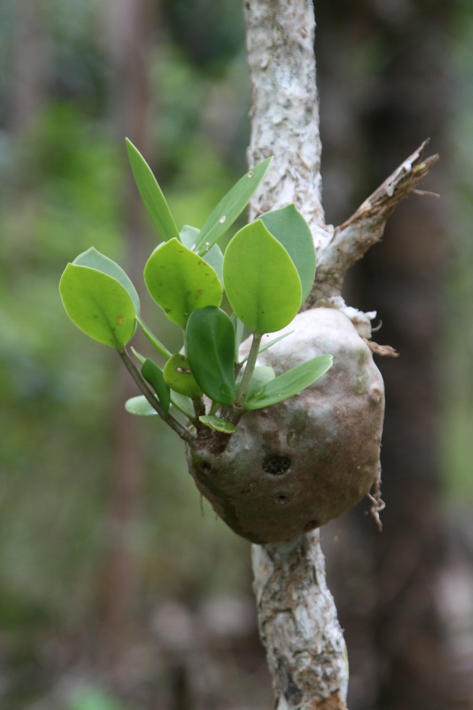 Other non-rubiaceous Australian epiphytes with ant-house morphological adaptations include Dischidia major (fam. Apocynaceae) and the fern, Lecanopteris sinuosa (fam. Polypodiaceae).